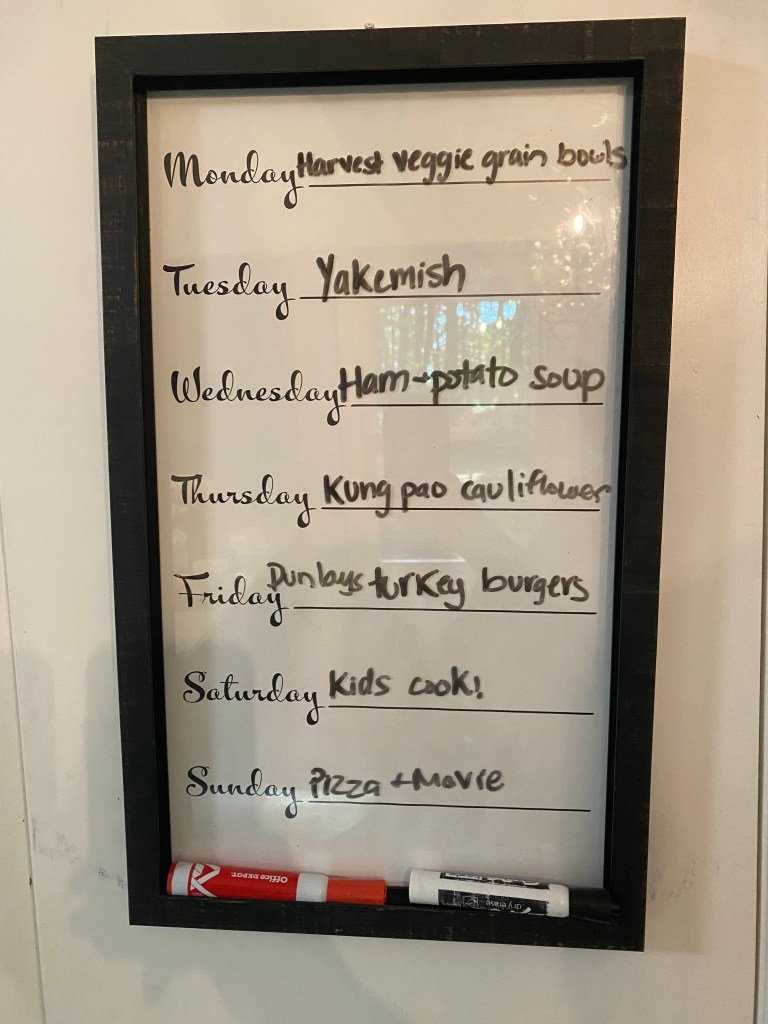 Me: Since we leave Monday morning, I’m to going to try and get Monday’s chores done today. So that’s laundry, cleaning the bathrooms, deep cleaning the kitchen, and mopping. Plus we should probably organize the cubbies, the pantry and the coat closet so your parents can find everything easily.